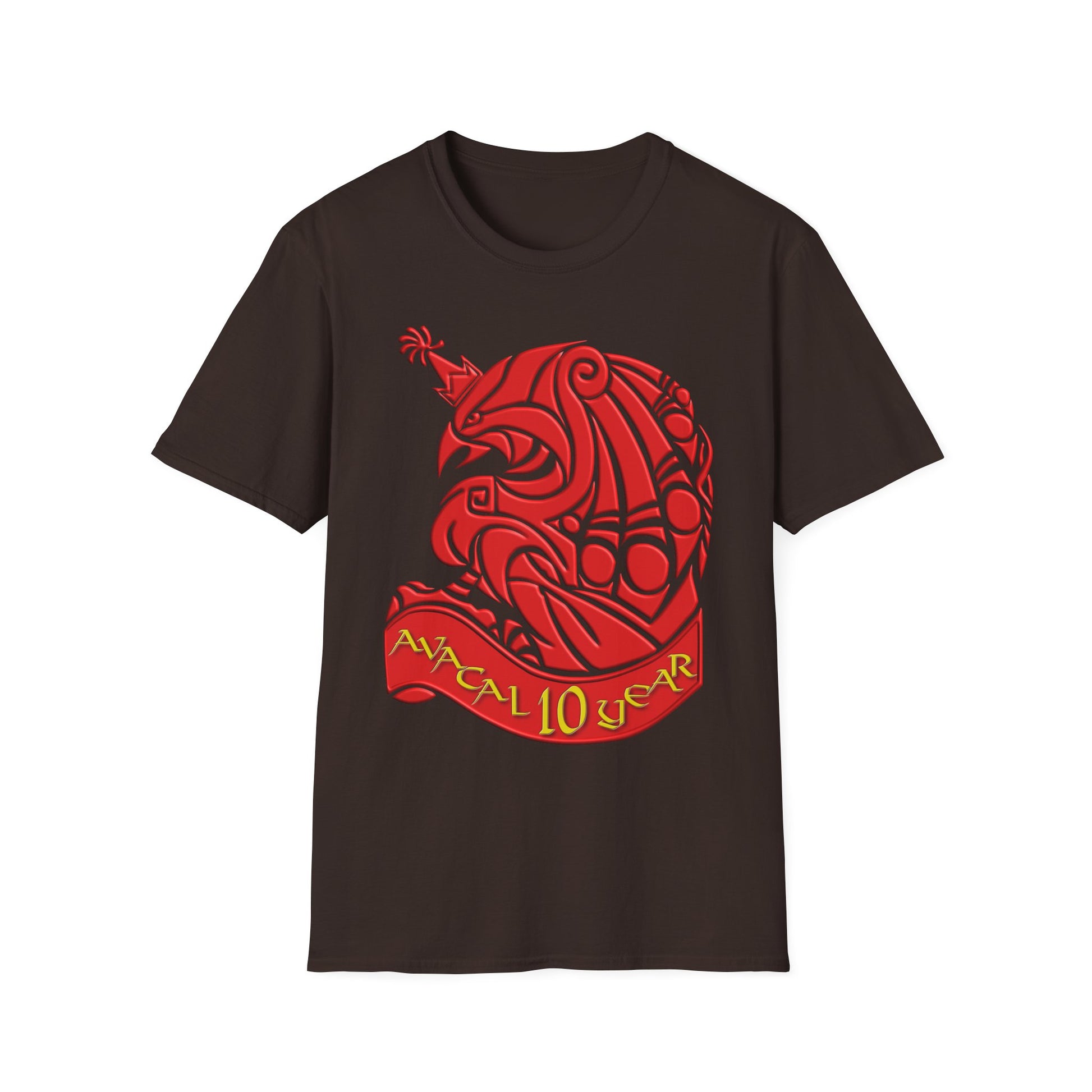 Show your Avacal pride with this tee commemorating our kingdom's 10th year anniversary event. Featuring an interpretation of beloved Fluffy, stylized to show his party side for our kingdom's 10th birthday, this is a tee that says "I was there!" The soft, lightweight fabric ensures all-day comfort, whether you're lounging at home or out with friends pillaging the neigbouring kindom.
