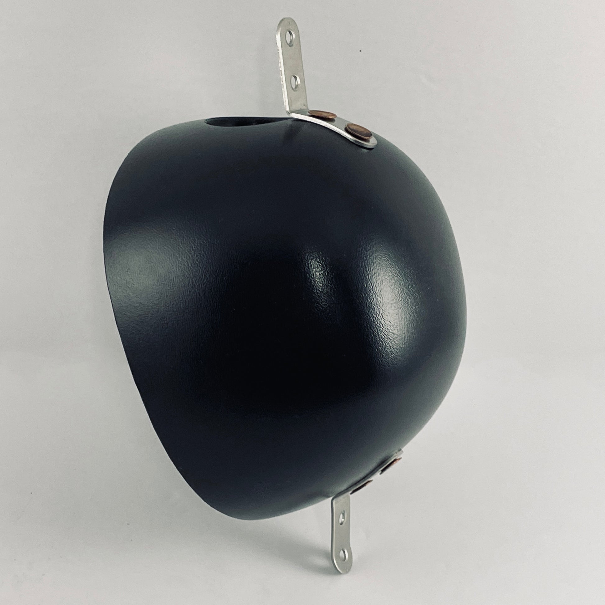 The default configuration for my basket hilts is to drill a 1 5/8” hole centred 2" back from the edge, to drill a half hole centred along the bottom, and to rivet a couple of stainless steel brackets on. This leaves the most room on each side, as well as giving a little extra space at the front. If you'd like to customize your hilt in any other way (i.e. offset holes, closer to the front, etc) please contact me.