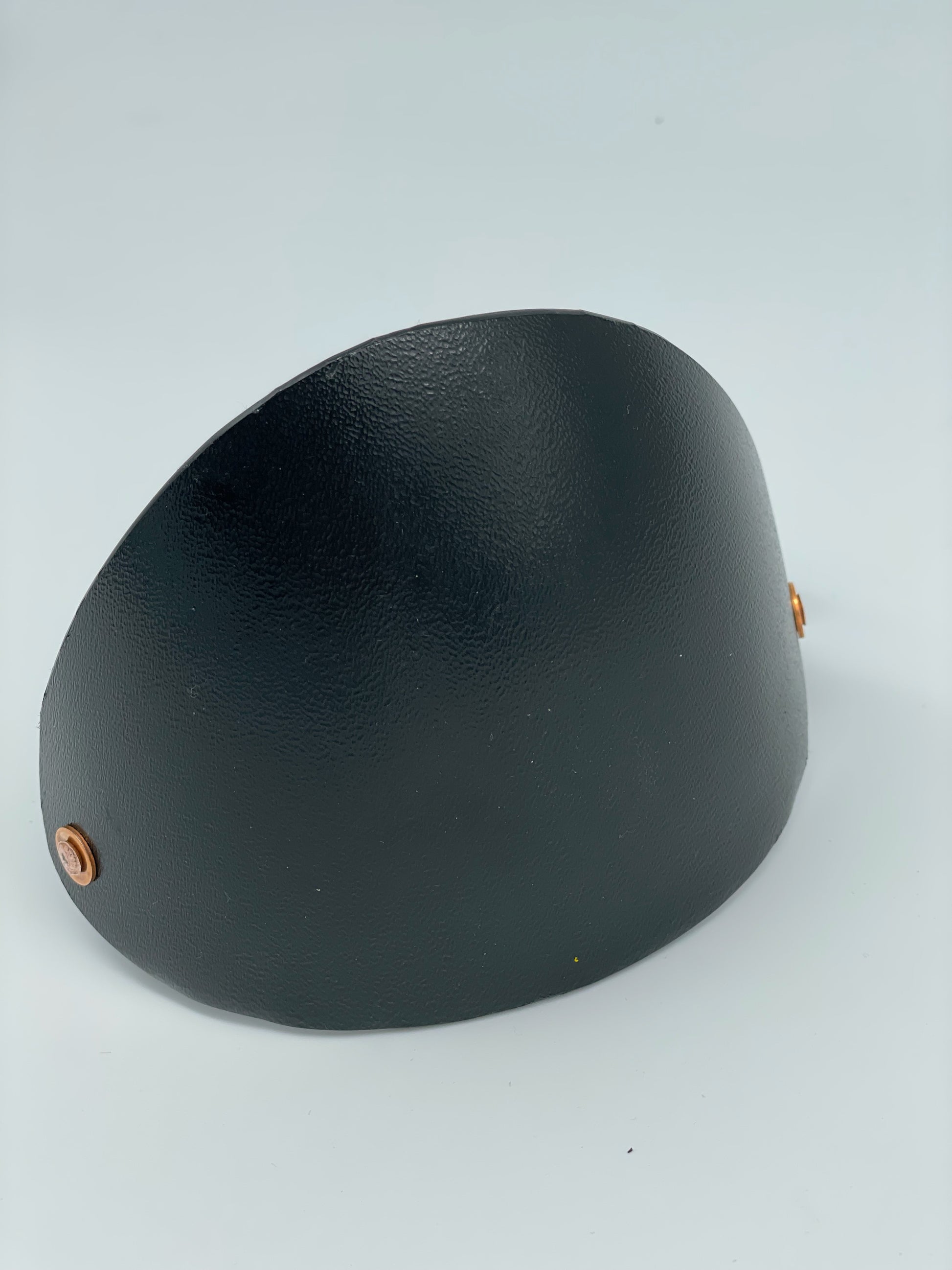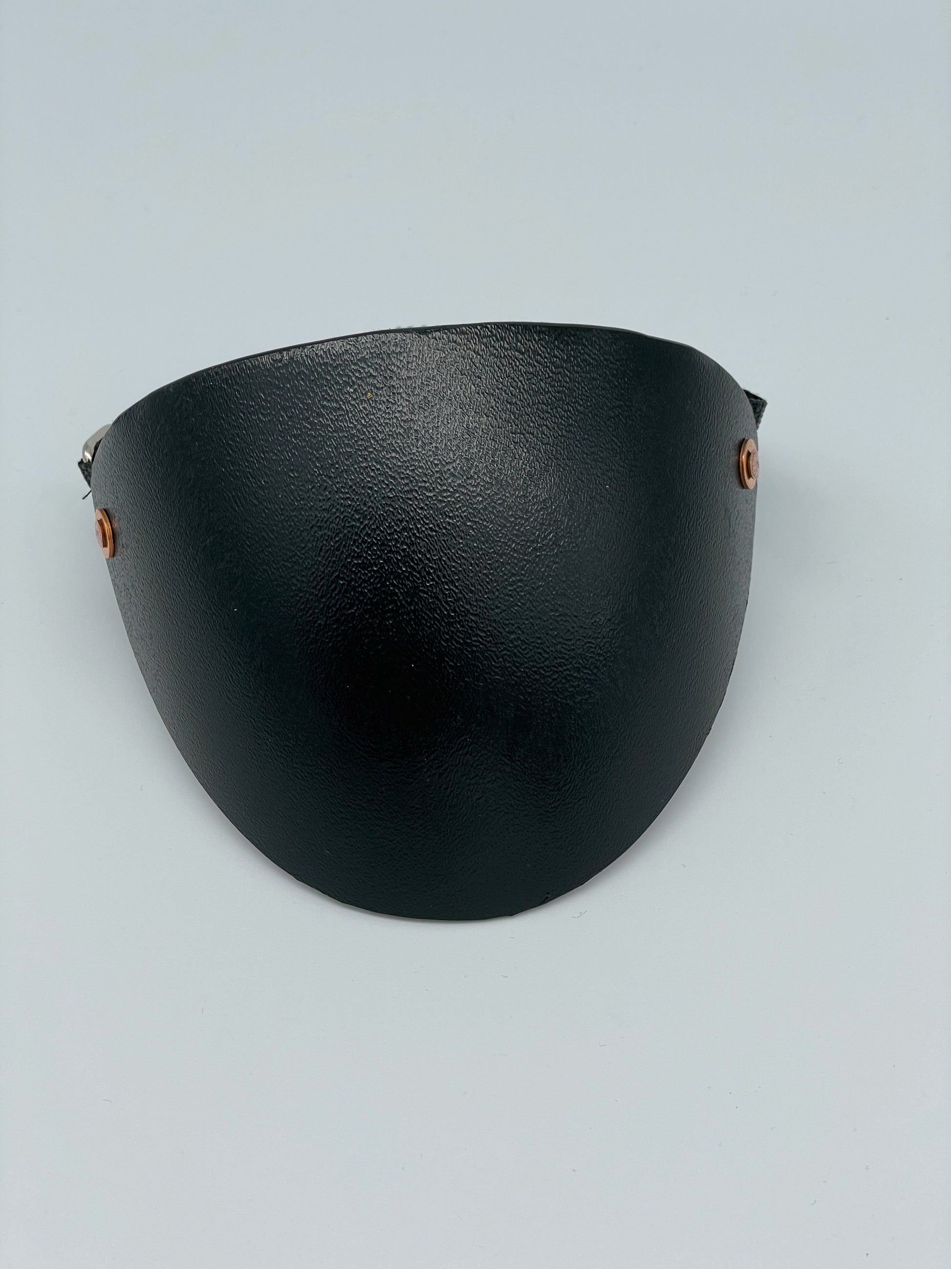 These can be attached to a pair of elbows with something as simple as a length of para-cord and a household drill, but I prefer to use a length of webbing and copper rivets. If you'd rather I attach them to a set of elbow cops in your order, there will soon be options for that. Until that time, just send me a note. These also make an excellent upgrade to bazubands rerbraces. As they are a little larger than the rerbraces made for bazubands, they offer overlapping coverage and maximum protection while being only slightly heavier. See the upgrade options in the bazuband page for more details.
